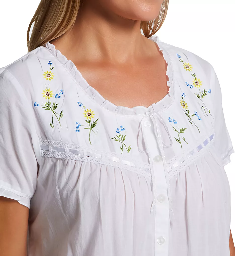 - Pretty floral embroidery and ribbon detail surrounds the neckline.