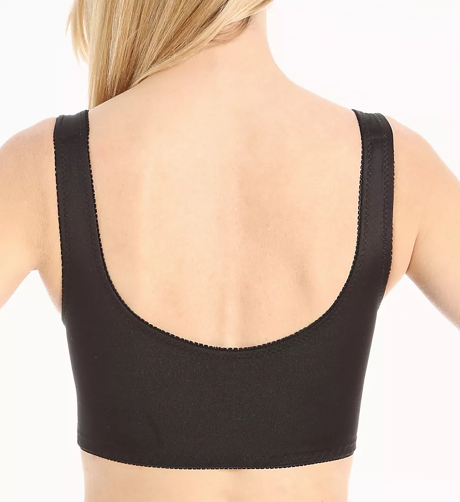 - Scoop back has sewn-on elastic to maintain shape.