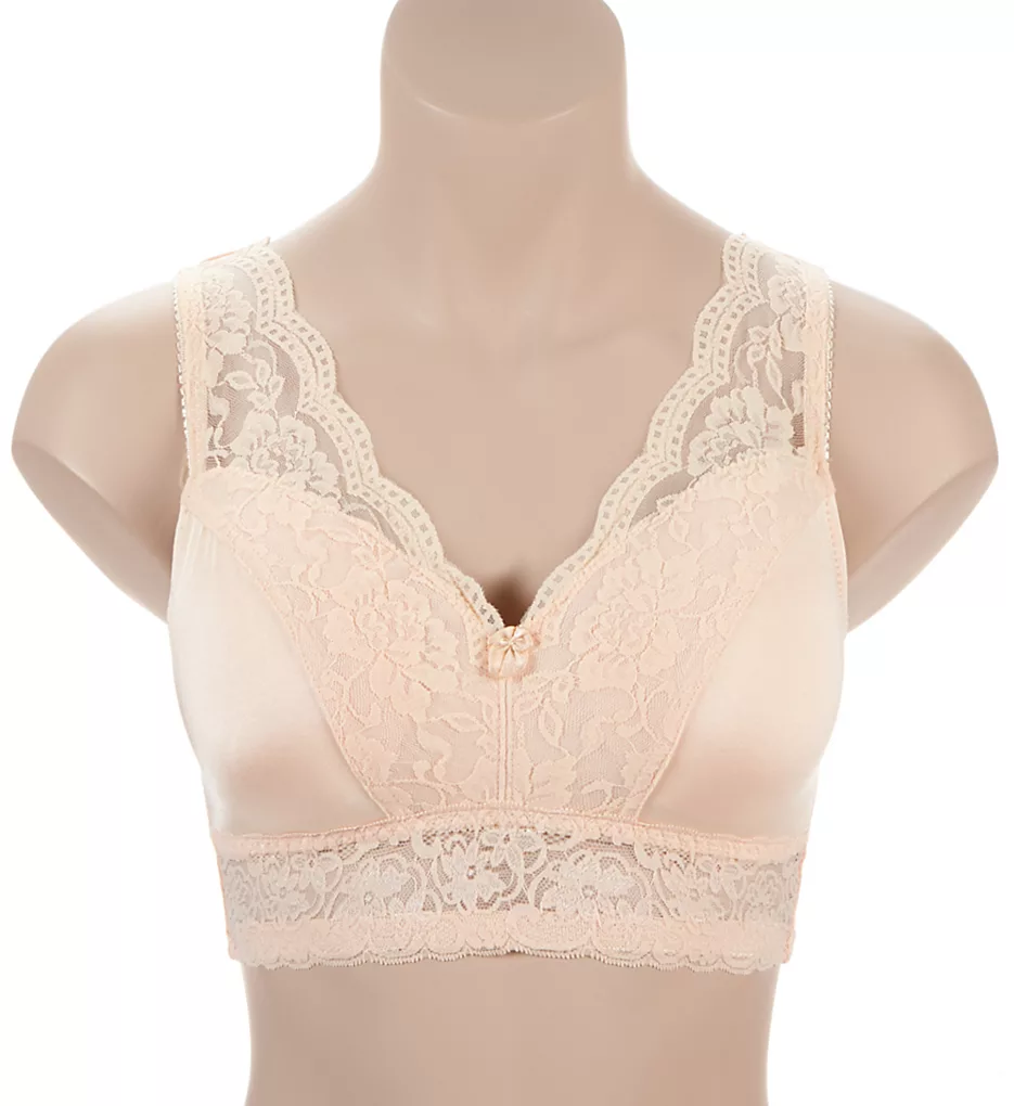 - Lace apex neckline has a band sewn onto scalloped edge to help restrict stretch and maintain fit.