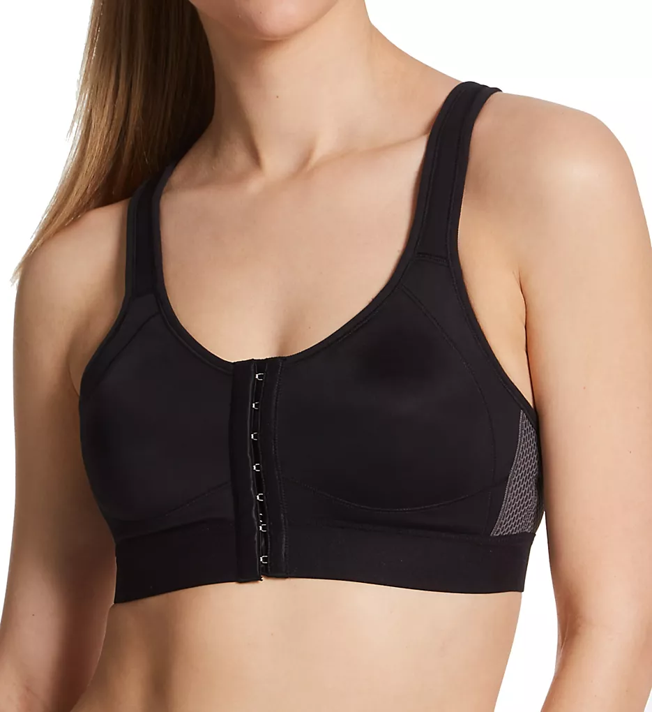 This comfortable wireless sports bra features a front hook-and-eye closure. Looks sporty and not “medical.” Made of nylon and spandex.