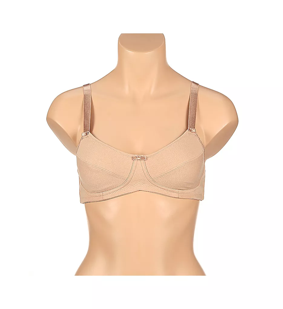 This 100% cotton wireless bra in soft cotton jersey has lining that extends to the sides and has pockets to insert your own prostheses or removable padding.