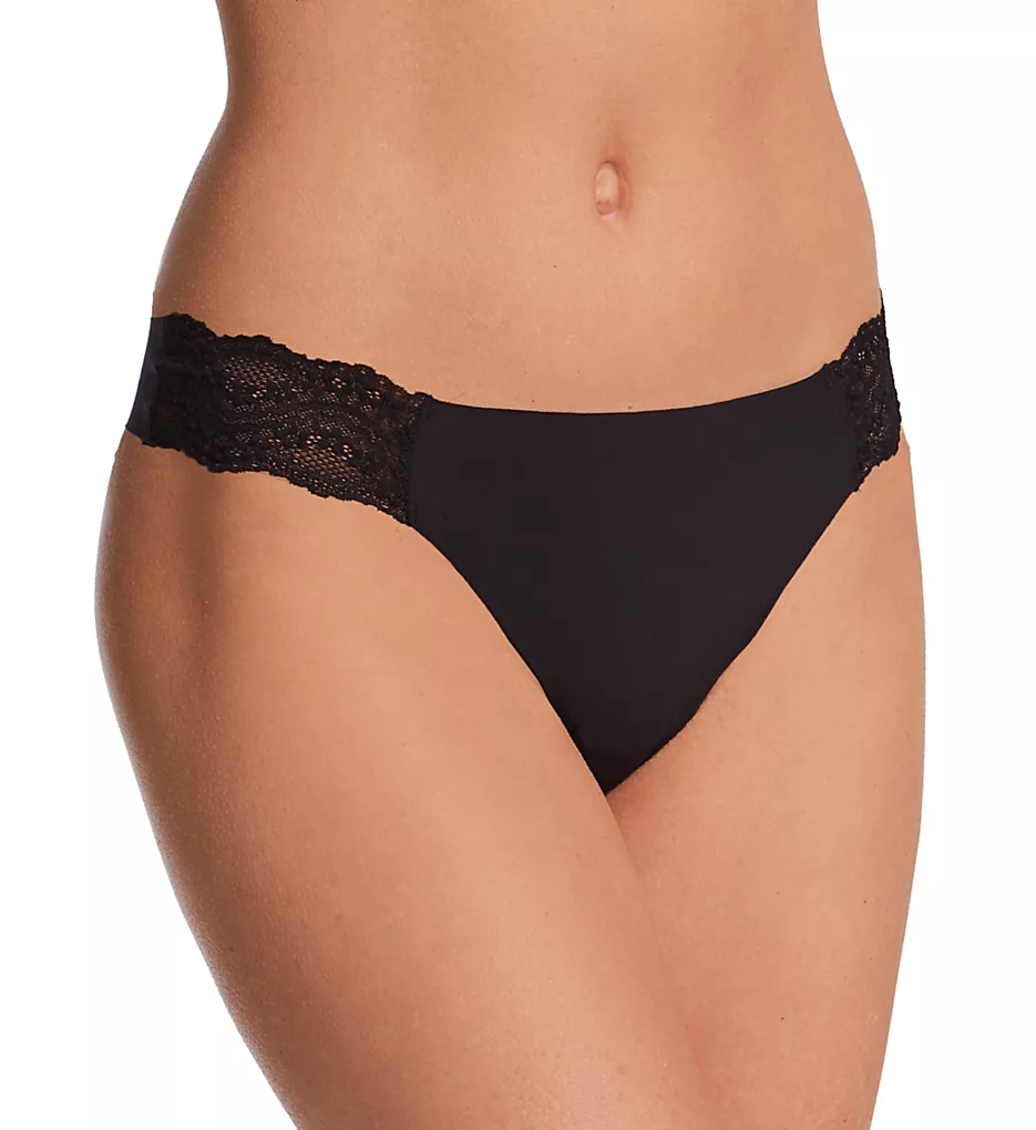 Virtually invisible under clothing, these thongs are made from sleek microfiber with laser cut hems for a clean edge and sheer lace at the sides. Made from nylon and elastane with a cotton gusset.
