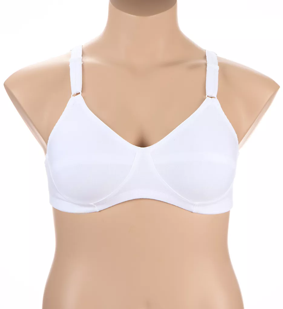 - 100% cotton two-ply knit bra is completely latex-free, but has elastic made with spandex that touches your skin.