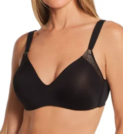 This soft, comfortable wireless bra features cushioned front straps and subtle push-up lift for a comfortable fit. Made of nylon and elastane.