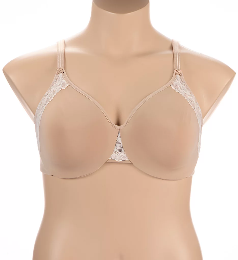 - Molded underwire cup is with a soft minimizing lining layer that gently compresses breasts for a firm, but less full look.