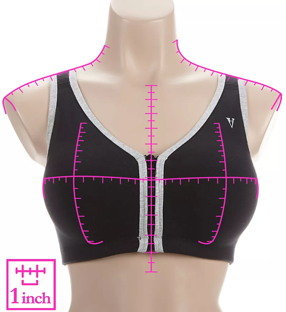Soft stretch cotton sports bra has a zipper closure at front and ventilated racerback. Made of cotton, nylon and spandex.