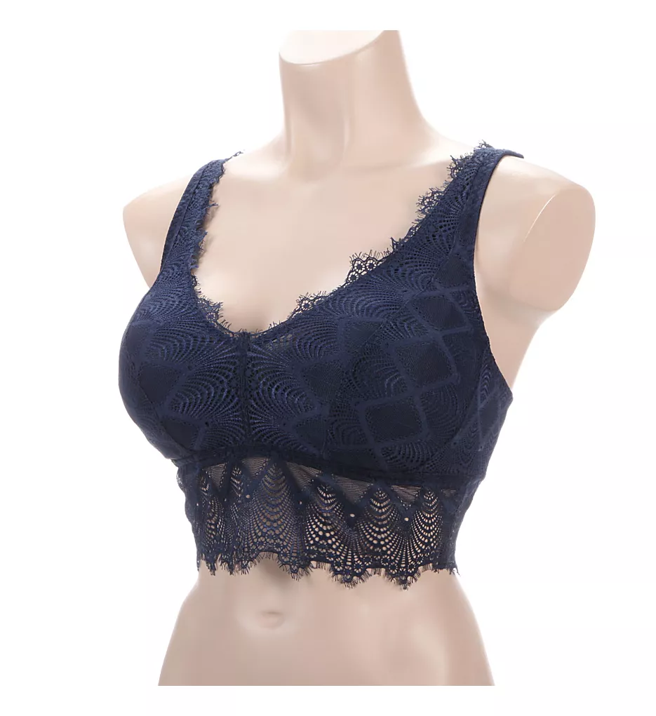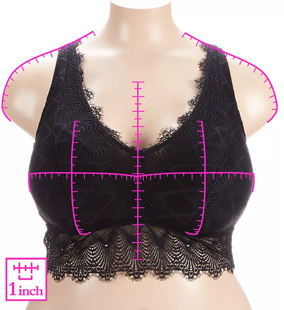 - Sheer eyelash lace panel extends from base of bra for a pretty look.