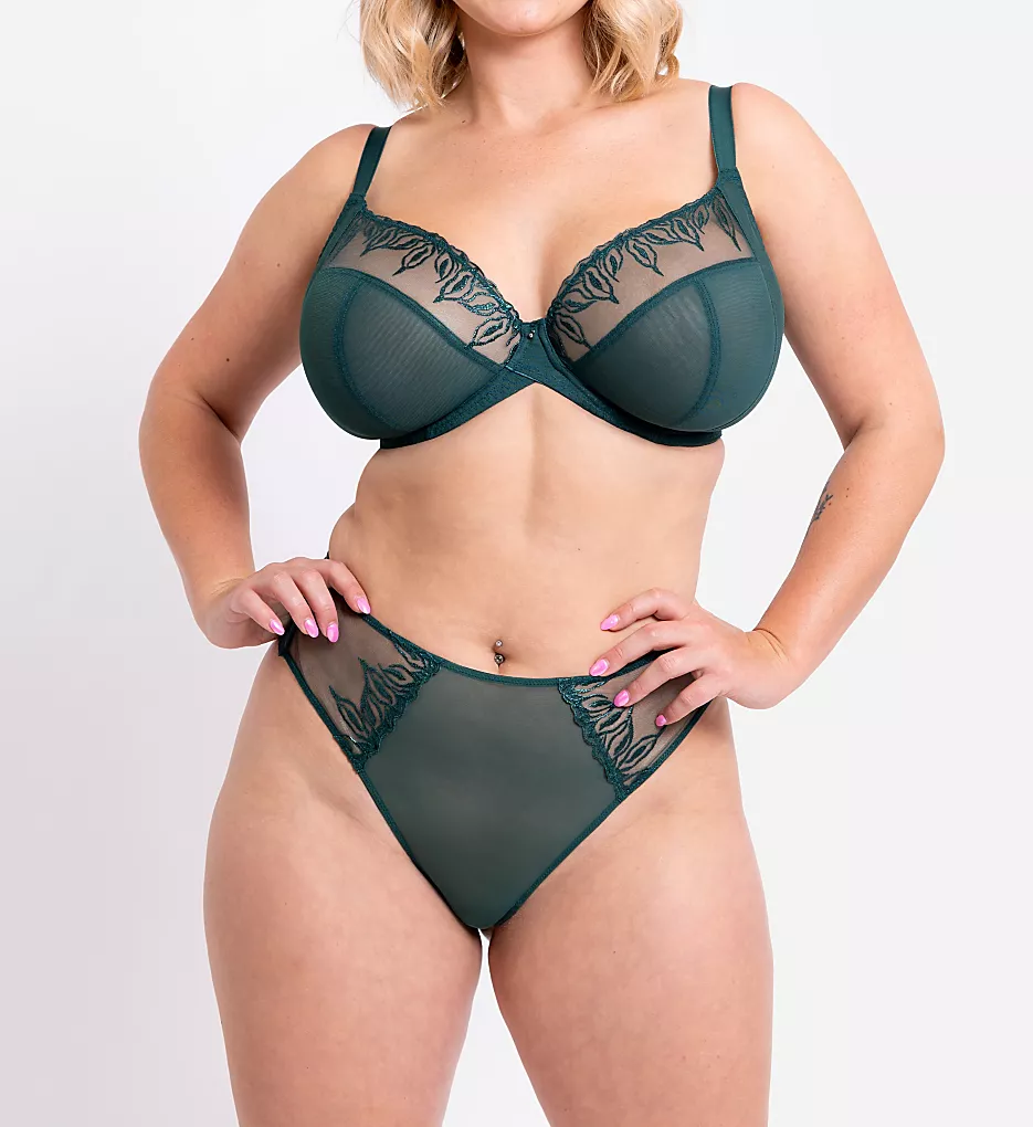 Sheer mesh thong with a high-waisted profile and sexy embroidery at the front. Made of polyester, polyamide, and elastane.