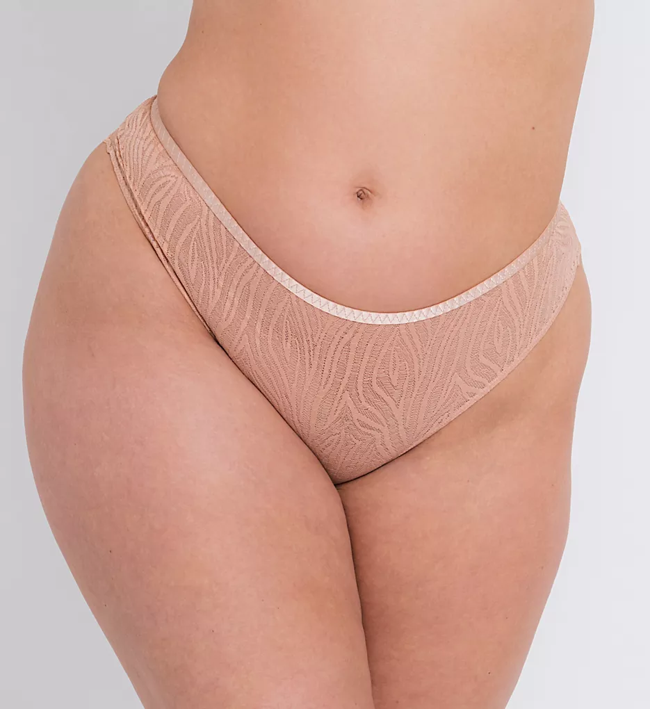 - “Cheeky” rear coverage features a scalloped lace edge for no VPL.