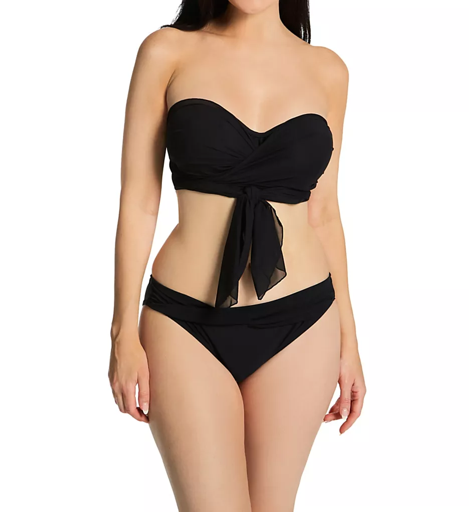 The Wrapsody collection is defined by its versatile black colorway and unique fabric play. This brief offers a seamless rear for a smooth look under any cover-up, while the mid-rise waist provides comfortable security. The front is accented by a sheer tulle overlay that adds a touch of sexy sophistication without sacrificing coverage.