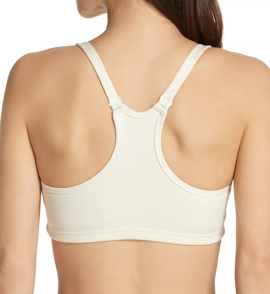 Cotton wire-free bra secures at front with snap closure for easy styling. Wide-set straps adjust and connect at back to create a racerback for everyday wear. Made of 100% organic cotton.