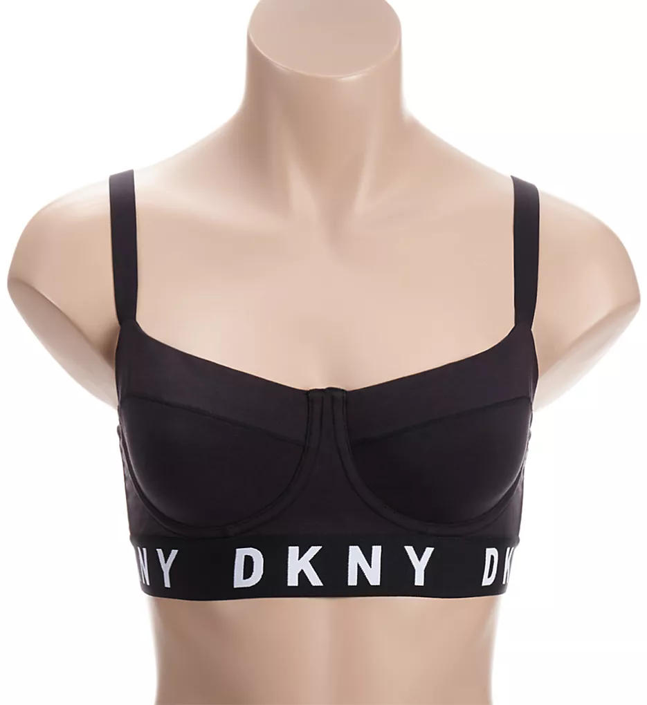 - Underband of wide, exposed elastic with the repeating knitted DKNY label.
