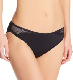 - Smooth microfiber front features sheer mesh insets at top sides with guipure embroidery