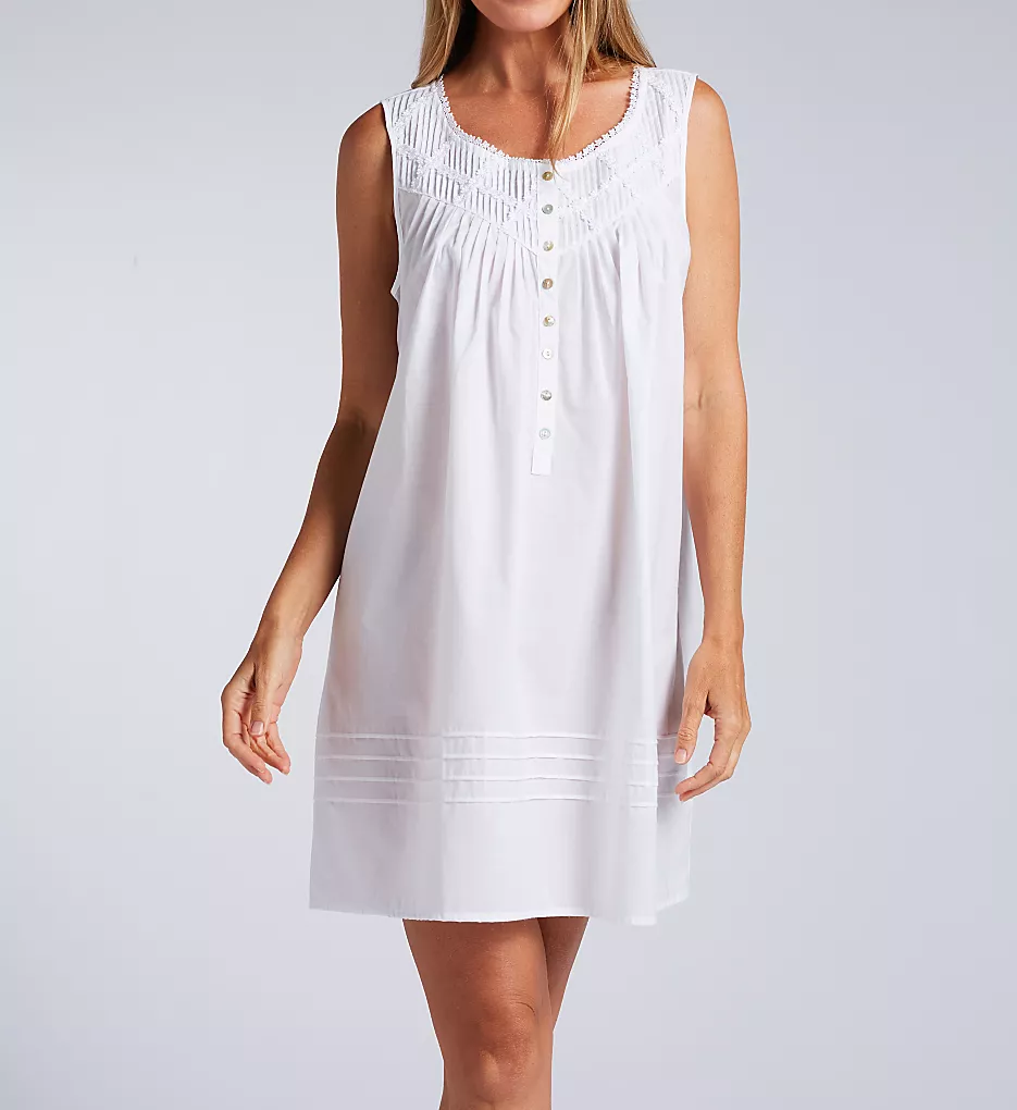 Elevate your sleepwear collection with the Eileen West Everyday Sleeveless Short Chemise. Crafted from premium, preshrunk 100% cotton lawn, this lightweight nightgown offers a breathable and airy feel, making it the ideal choice for warm nights or lounging in luxury.