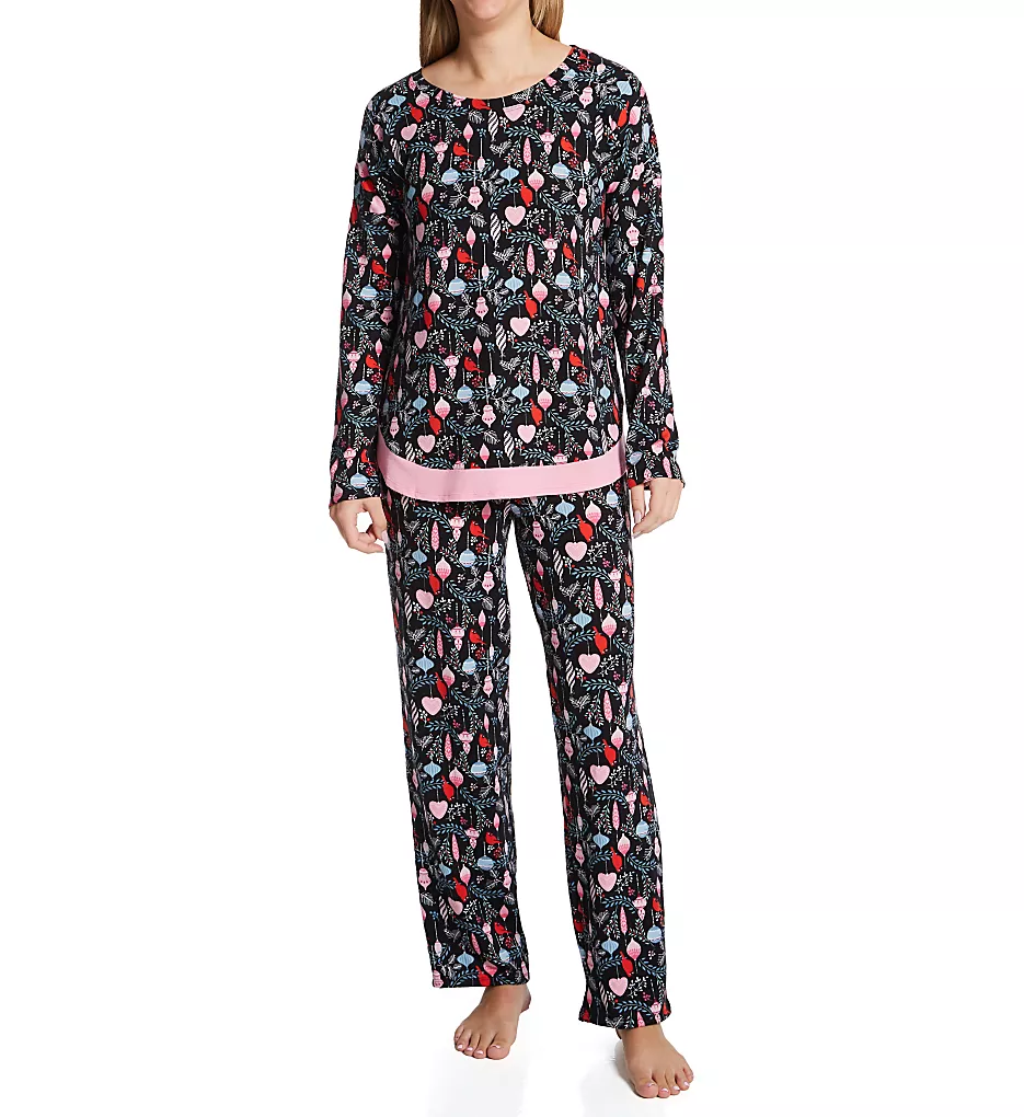 Celebrate the season with the Ellen Tracy Brushed Sweater Knit PJ Set, featuring a playful festive flamingo print that adds a touch of whimsy to your winter nights. This two-piece set is designed for the woman who values both style and ultimate relaxation, blending a festive aesthetic with the luxurious feel of a soft, brushed sweater knit.