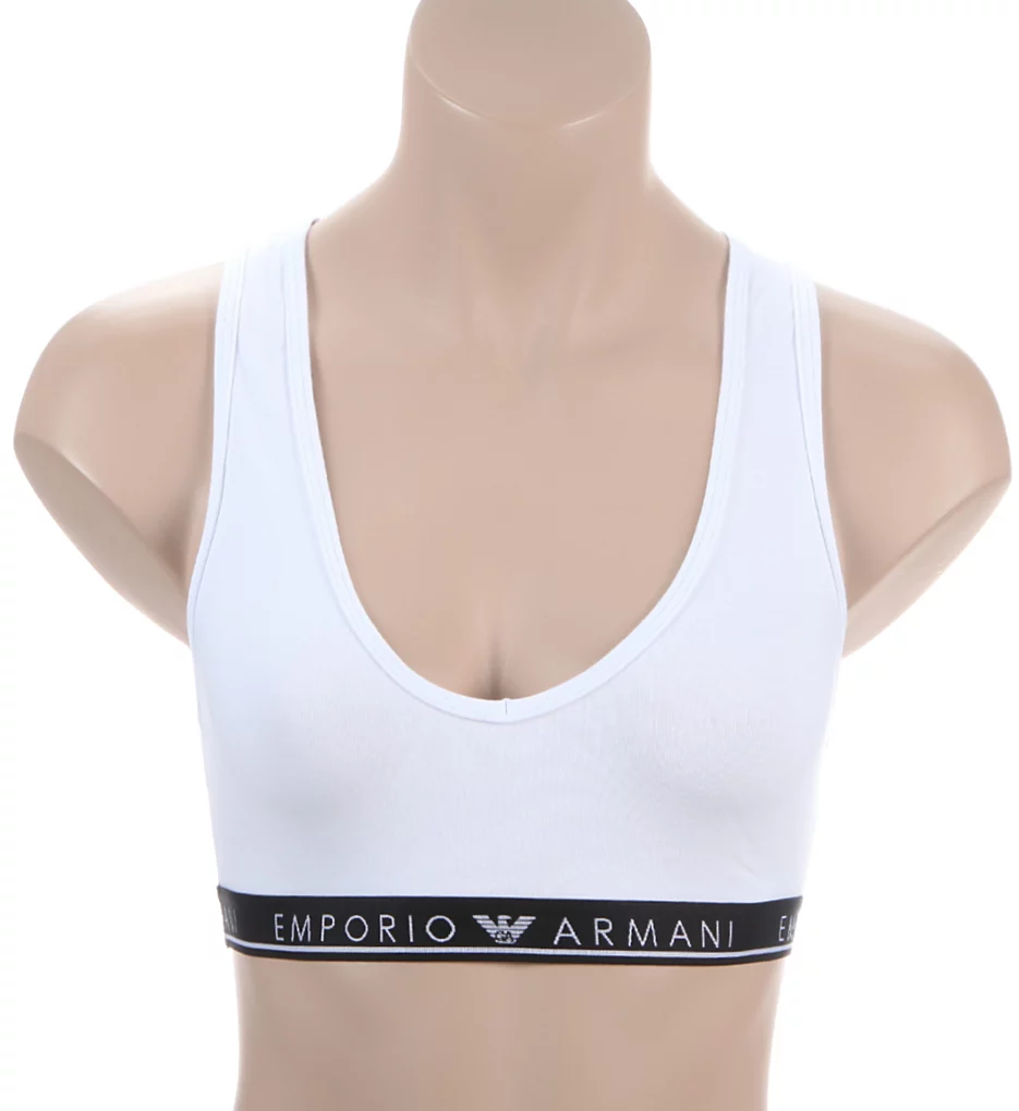 Racerback bralette bra features the classic logo on underband, non-adjustable straps, and wire-free cups. Soft knit is made of cotton and elastane. Underband is made of polyester and elastane.