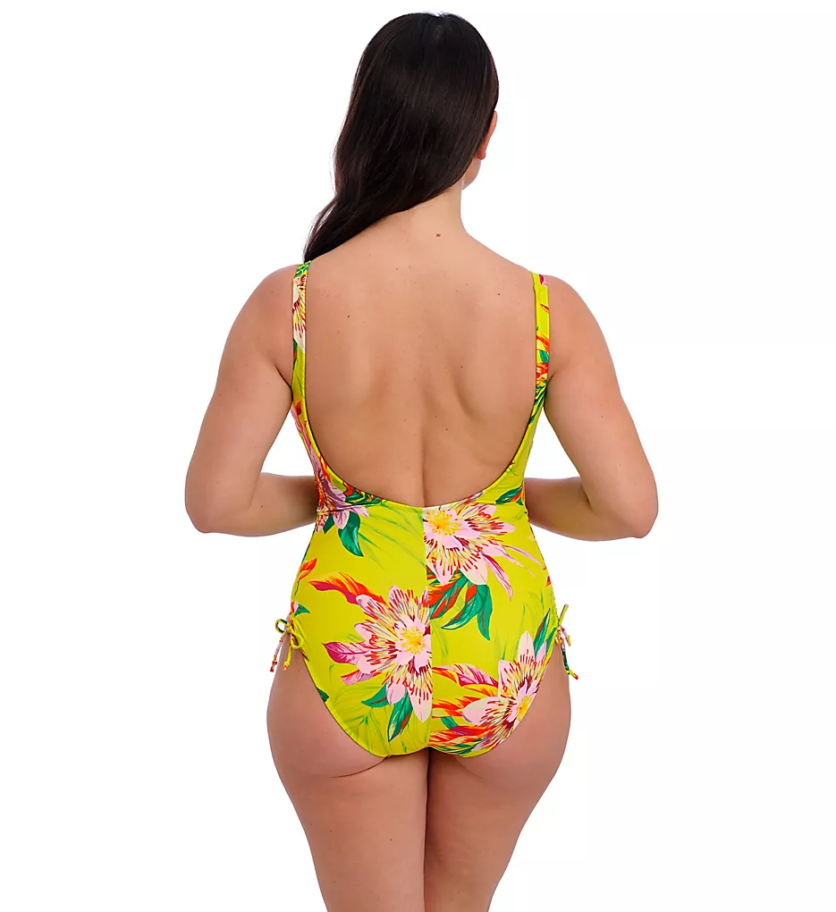 The Fantasie Cala Macarella One Piece Swimsuit features a vibrant, powerful blend of tropical floral colors that make a stunning statement at any beach or pool. Designed with the brand’s signature bra-sized engineering, this swimsuit provides the lift and security of your favorite bra combined with high-fashion swimwear aesthetics.