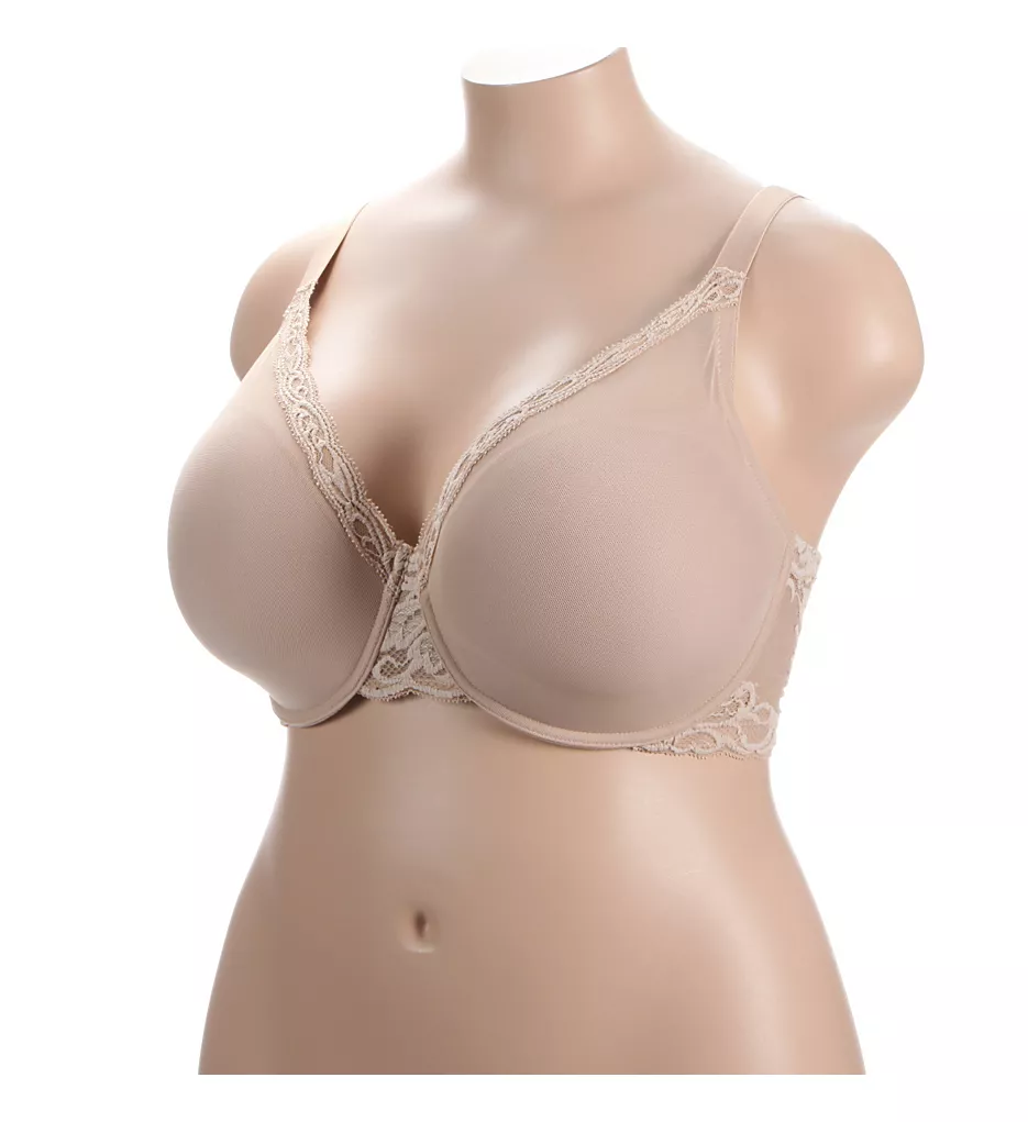 - Sheer mesh cup overlay features Natori’s signature lace trim.