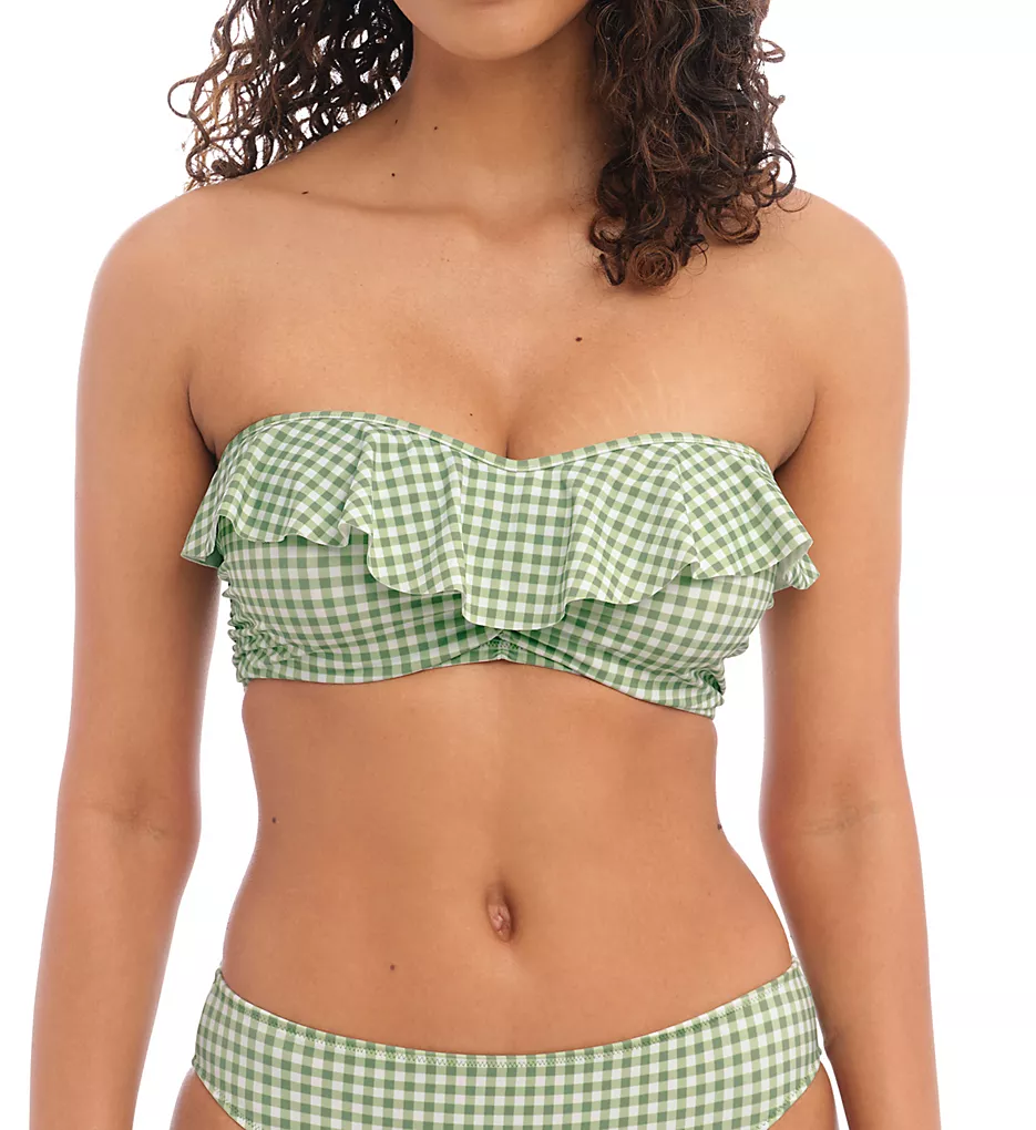 Freya Check In Monochrome Gingham Underwire Bandeau Bikini Top with Waterfall Frill