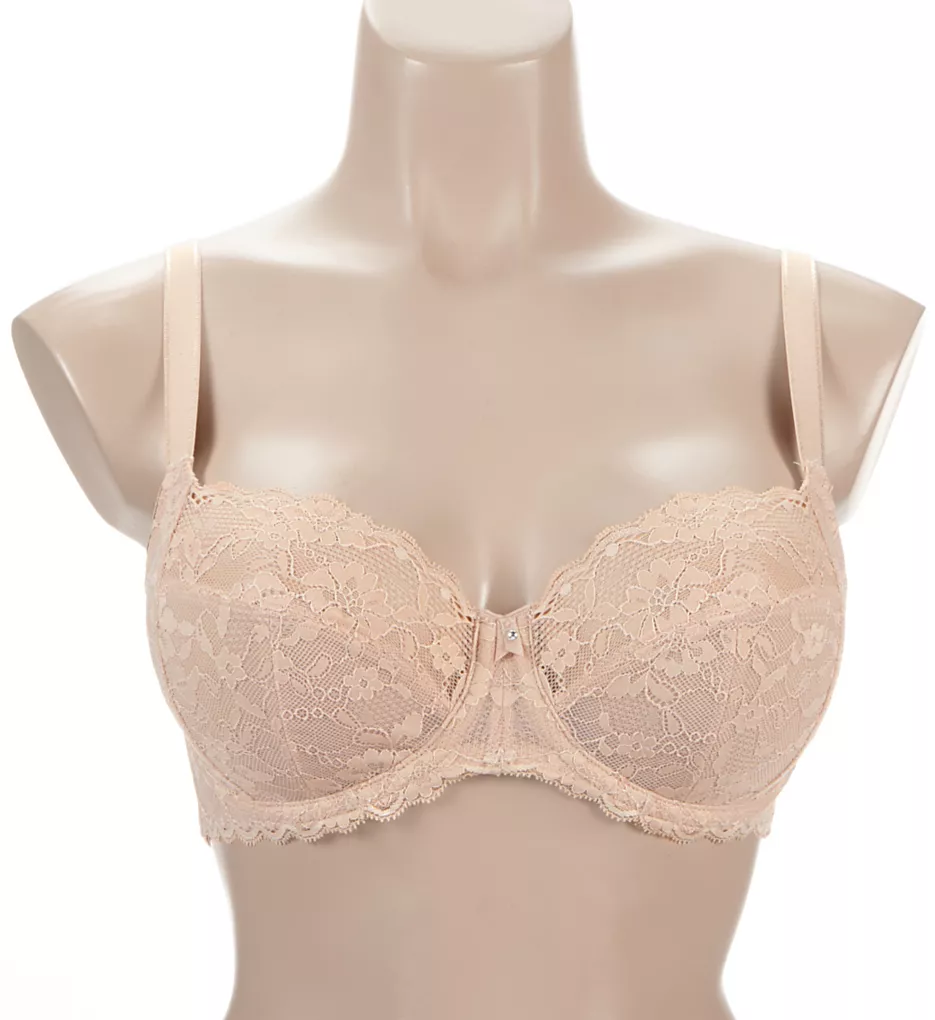 - Multi-part, underwire cup is unlined (unpadded) with non-stretch lace in the lower cup to contain and support the breasts.