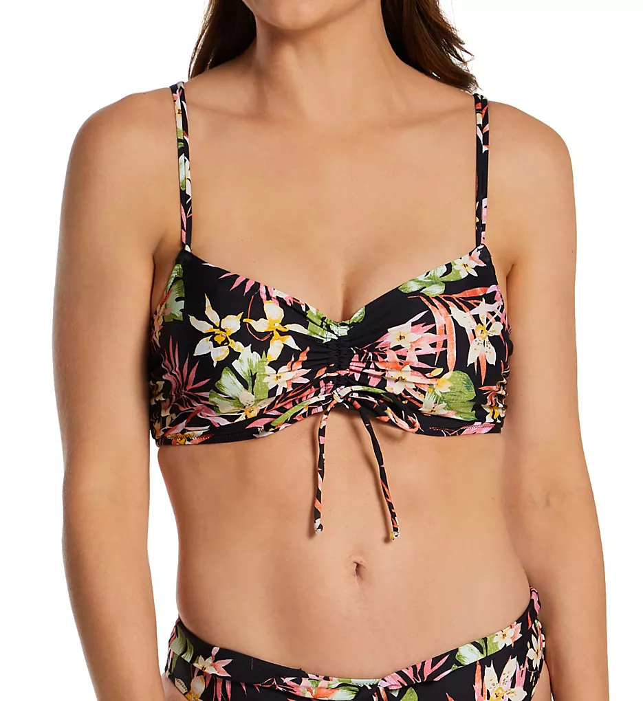 Embrace the warmth of summer with the Freya Savanna Sunset Underwire Bralette Bikini Top. This eye-catching swim top features a rich tropical floral print inspired by dusk in paradise, combining bold aesthetics with the signature support Freya is known for. The unique ruched center with an adjustable tie allows you to customize your coverage, making it easy to transition from a modest look to a daring plunge.