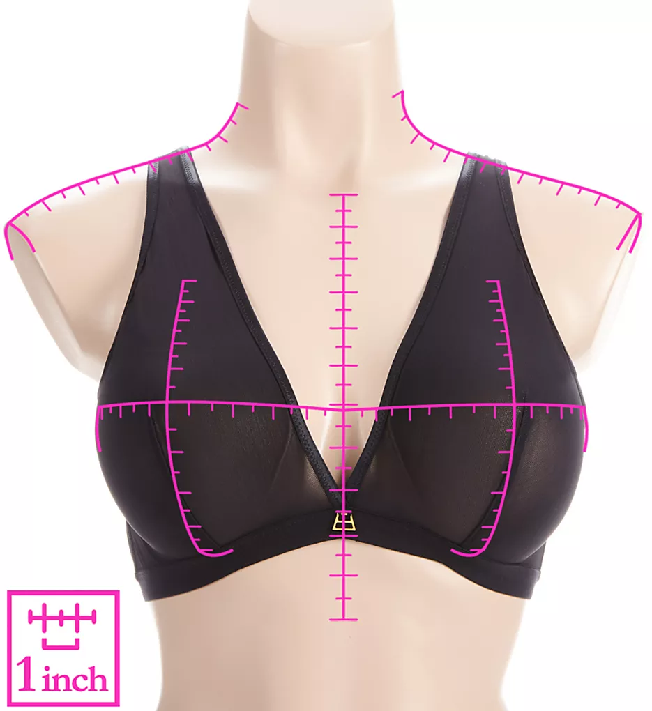 - Tall apex, wire-free, see-through triangle cup has a dart for shape.