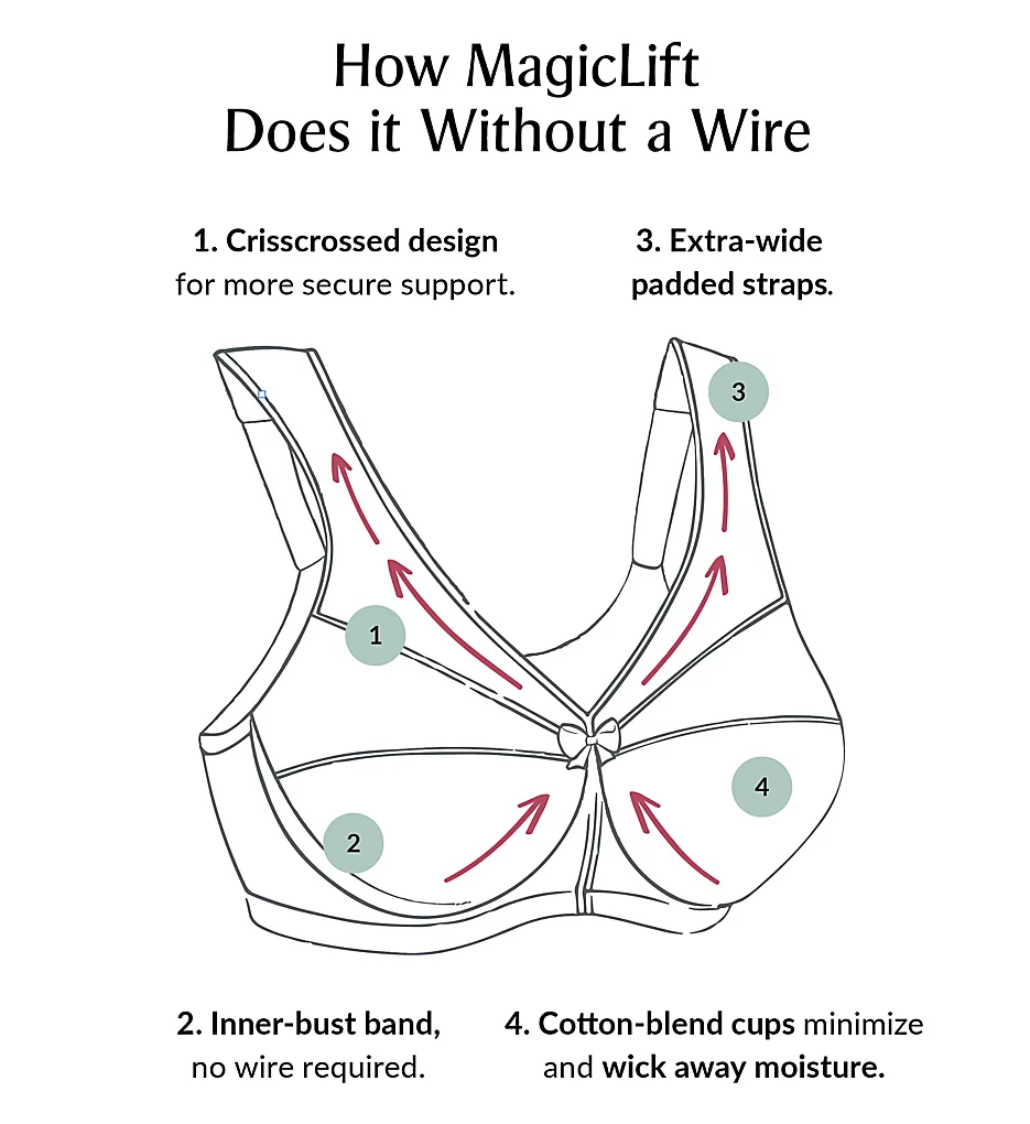 Get a magic lift with this minimizing wireless bra. Features beautiful floral stretch lace along the tops of the cups for an elegant look. Minimizes by one full cup size with comfort and support.