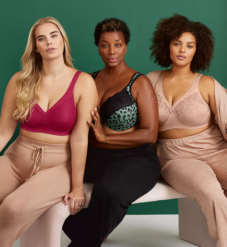 - Wireless, seamless, unlined (unpadded), non-stretch cup design reduces chafing.