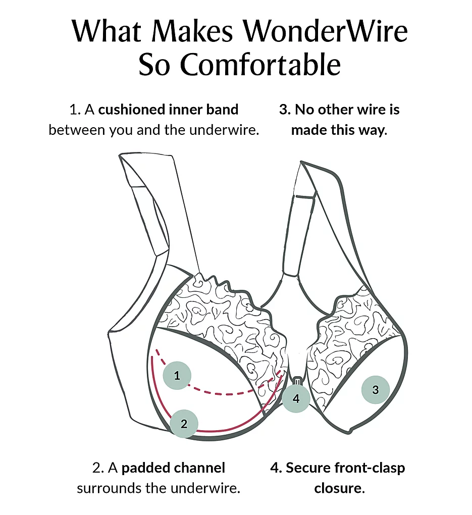 - The Wonderwire features a fiberfill cushioned underwire so it will never touch the body.