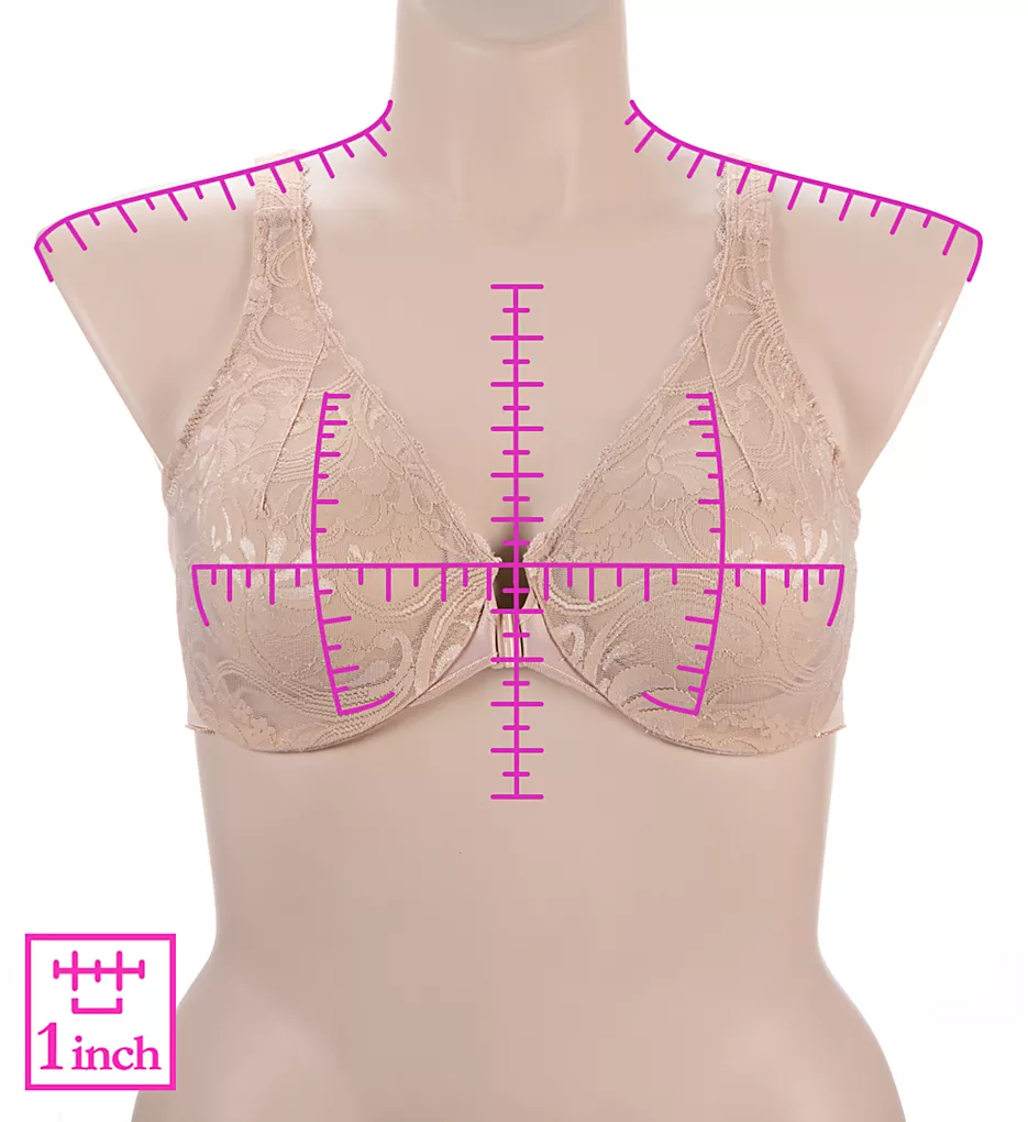 At long last, a pretty, stretch lace, front-close leisure bra that’s perfect for plus sizes. The special Wonderwire – flexible underwire – and a fiberfill cushioned band guarantees comfort.