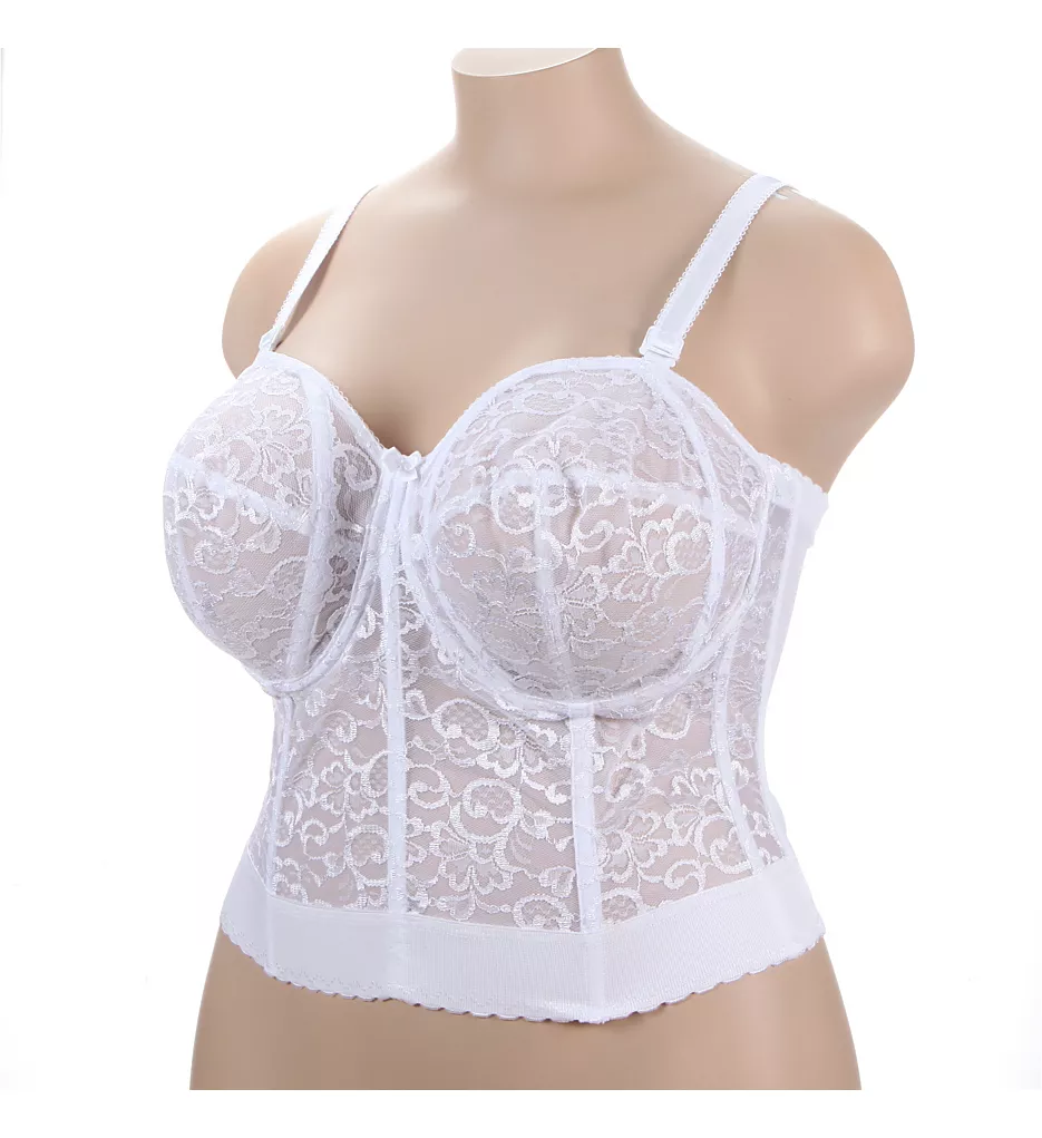 Get an elegant look with the ultimate support you need and deserve with this longline bra. Features non-stretch floral lace with boning in the cups and body for a supportive, beautiful look. Removable, convertible straps included.