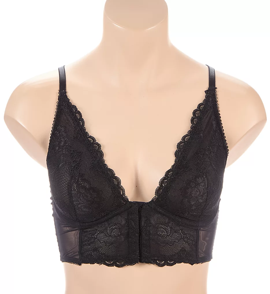 Gorgeous and sexy longline lace bralette has a front closure and lace racerback. Made of polyamide, elastane, polyester and viscose.