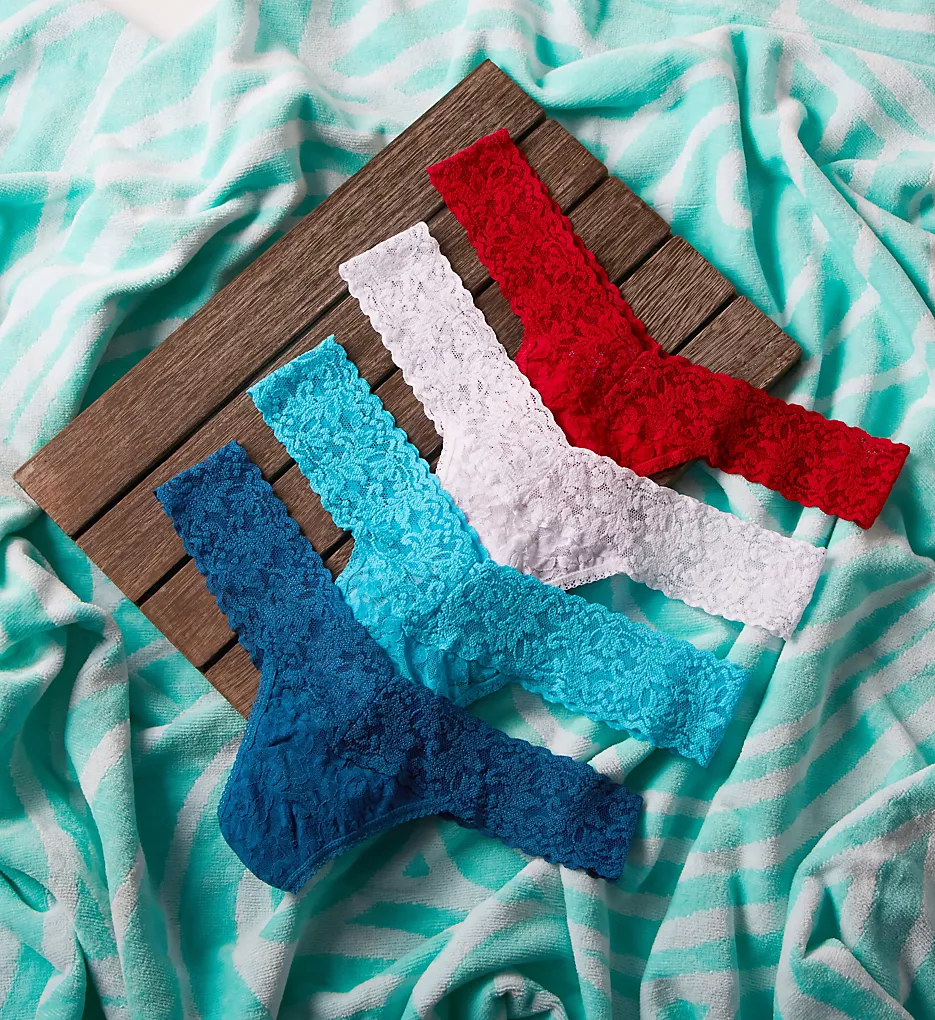 This thong is made of Hanky Panky’s signature semi-sheer stretch floral lace. Made of nylon.