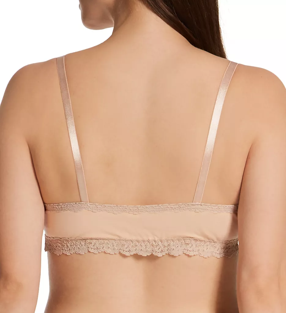 - 2-ply, seamed lace sides and back have sewn-on elastic at edges for fit.