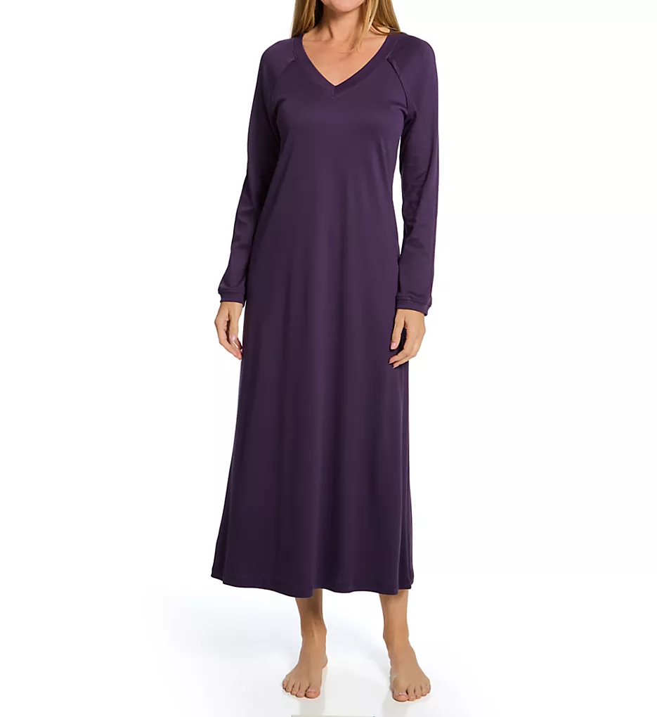 This gown features a graceful V-neckline and a full-length silhouette that provides modest yet stylish coverage. The exceptionally fine-knit mercerized cotton provides a subtle, silky sheen and a lightweight, breathable feel that adapts beautifully to both warm and cool temperatures.