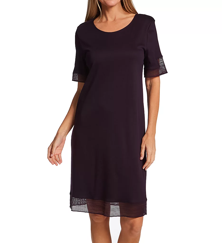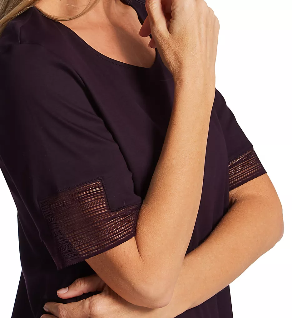 - Short sleeves with wide sheer lace insets.