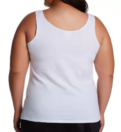 This crisp white camisole features a sophisticated matte finish and a fine-ribbed knit that contours to your natural shape. The elegant scoop neck is complemented by wide, 1-1/4 inch non-adjustable straps, providing a secure and flattering silhouette. Its seamless sides and back ensure there are no bulky lines, making it the perfect foundation for professional or casual attire.