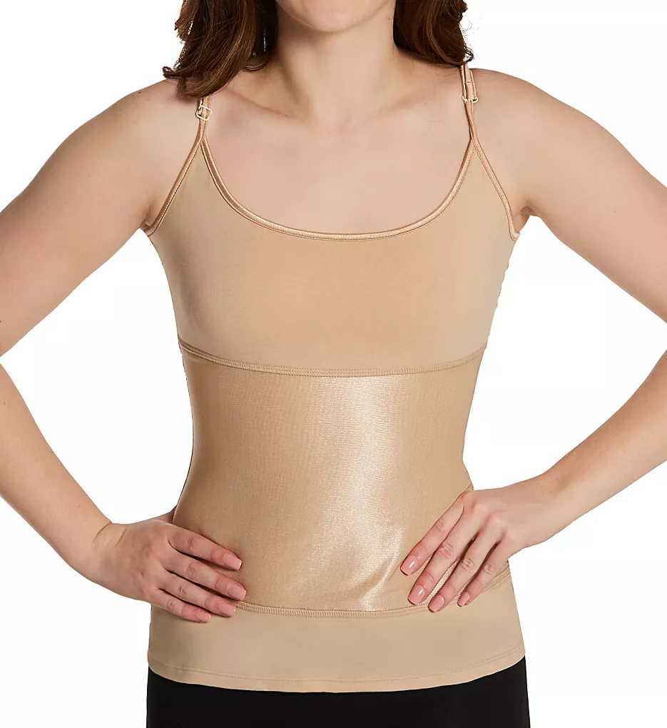 Visual Details: This sleek camisole features a clean scoop neckline and back with satiny elastic binding. The invisible mesh lining inside the control band provides extra power where you need it most, creating a smooth hourglass appearance under any outfit.
