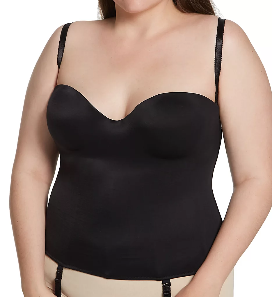 - Full microfiber exterior from cups to base at front to help soften outlines of boning for a smooth look.