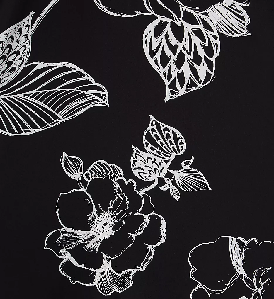 Chic black and white caftan on soft and light crepe de chine satin with stylish matte finish. Made of satin-woven polyester.