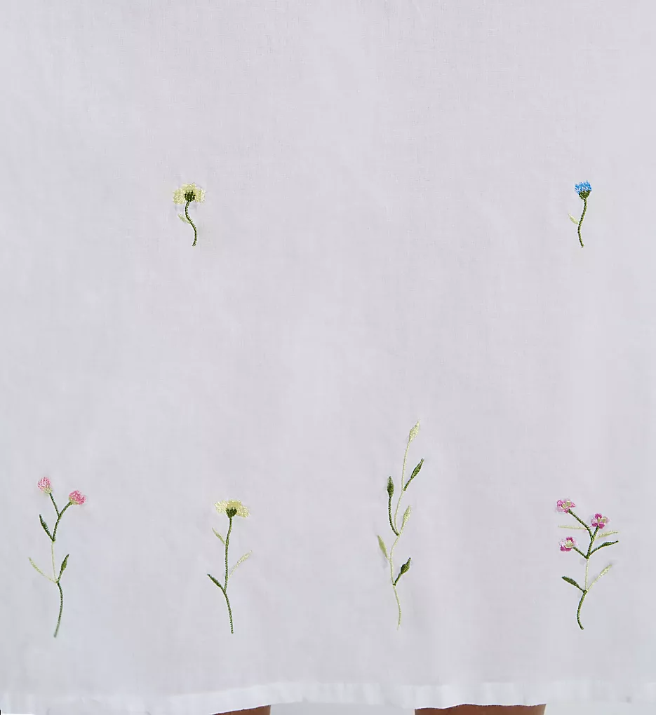 This nightgown features a beautifully detailed scoop neckline adorned with ruffles and a ribbon tie. Intricate floral embroidery graces both the front and back of the bodice, while the loose, flowing fit ensures maximum comfort for lounging or sleeping.