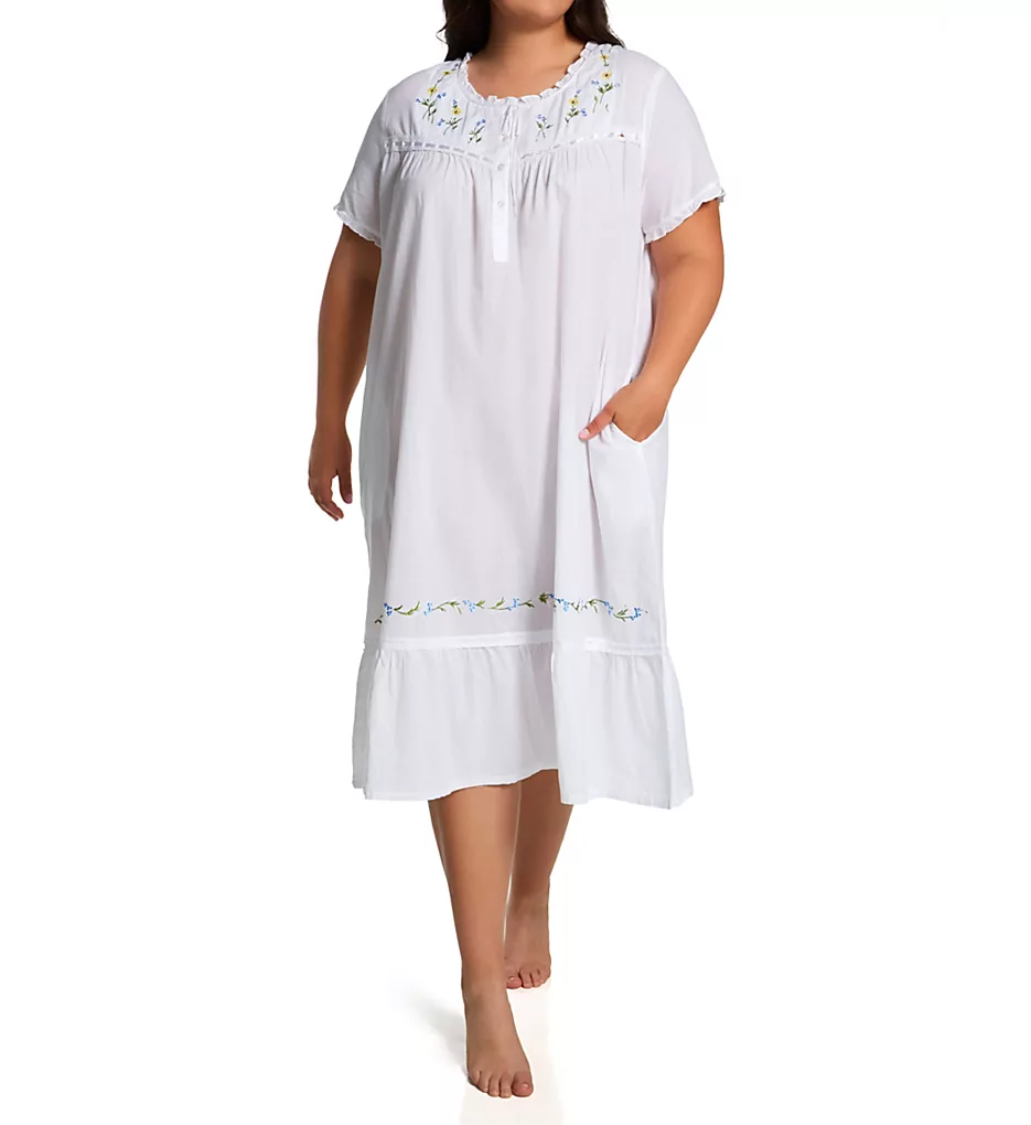 Elevate your bedtime routine with the La Cera Plus Size 100% Cotton Woven Nightgown. This crisp white gown features stunning, vibrant floral embroidery at the neckline and above the hem, offering a classic aesthetic that feels as good as it looks. Crafted from preshrunk woven cotton, it provides a lightweight and airy fit perfect for warm nights and relaxed lounging.