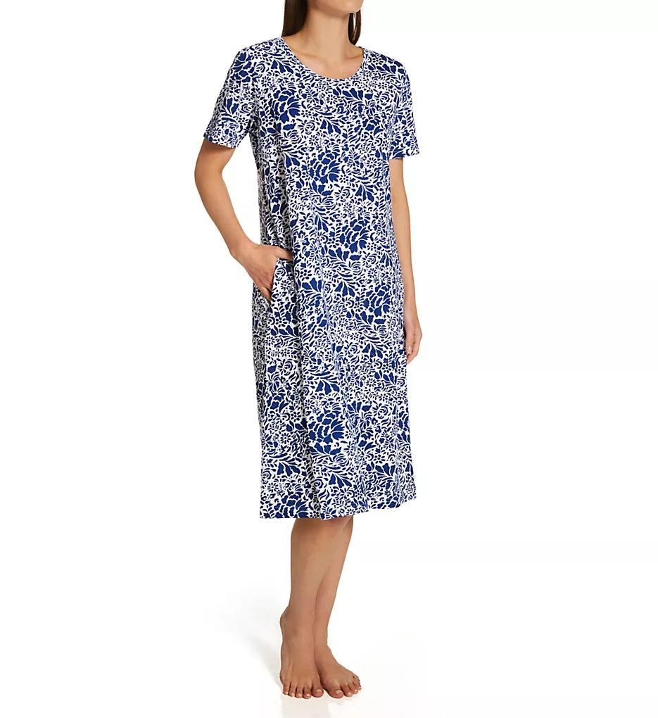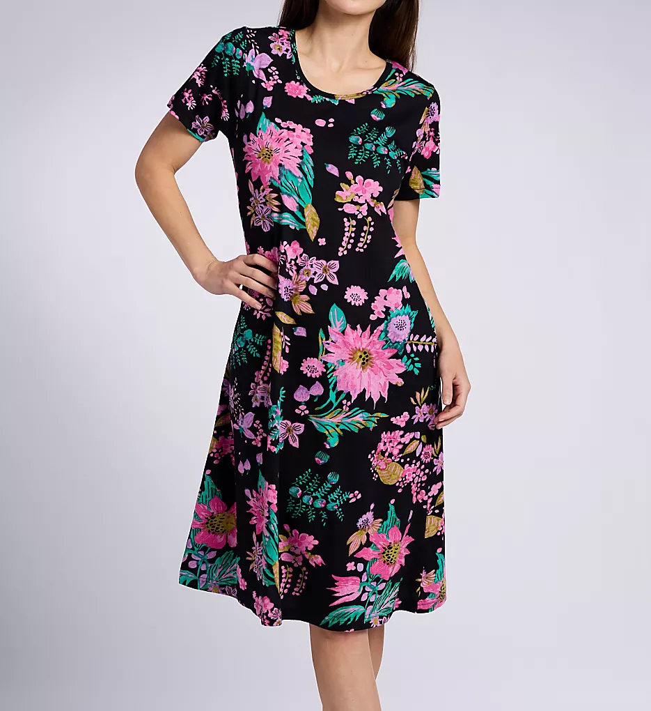 This lounge dress features a vibrant, all-over tropical floral pattern that brings a splash of color to your relaxation routine. The classic scoop neckline and short sleeves provide a relaxed, breezy silhouette that moves with you.