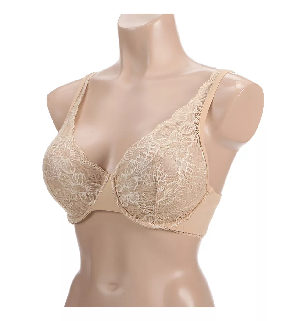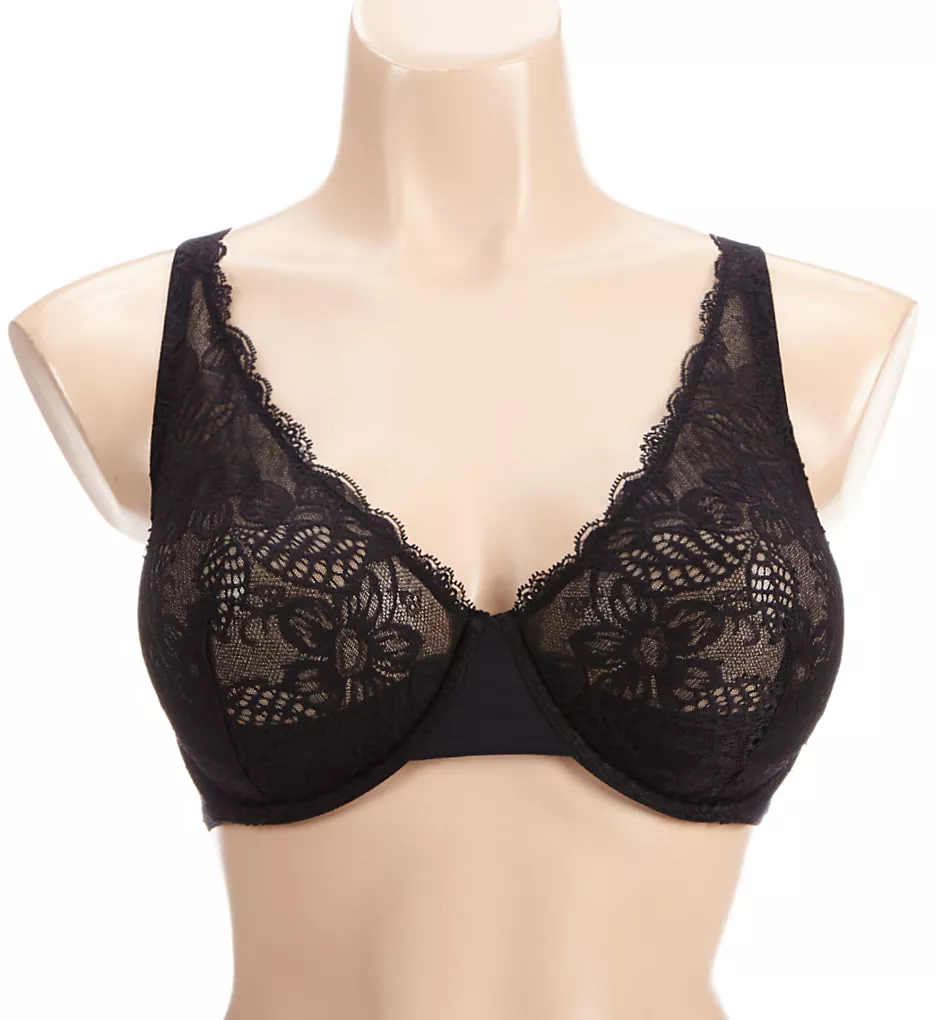 - See-through, lace underwire cups are unlined (unpadded) with a vertical dart for shape.