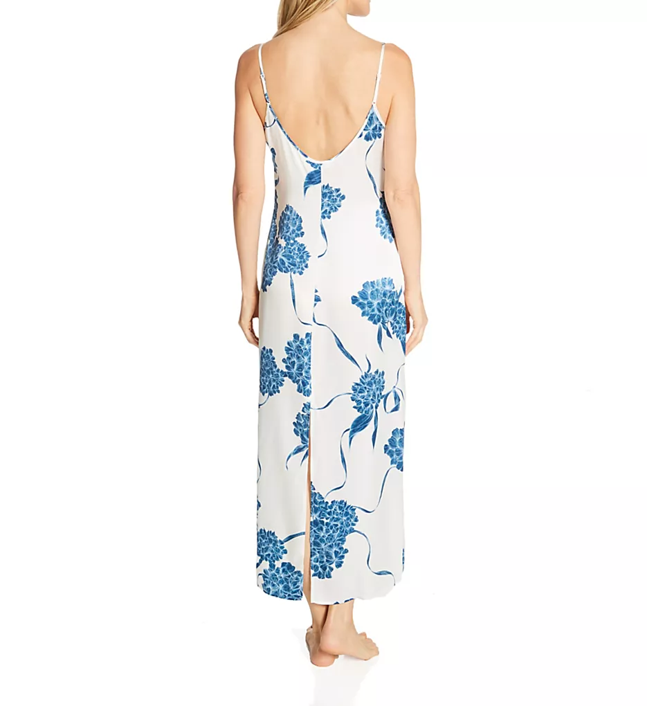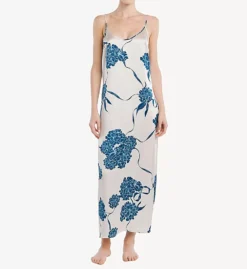 This exquisite nightgown features a high-gloss silk finish adorned with a vibrant floral print. The design is characterized by its elegant scoop neckline and a deep V-back with self-bound edges. A sophisticated back vent ensures effortless movement, while the relaxed fit provides a breathable, year-round luxury feel.