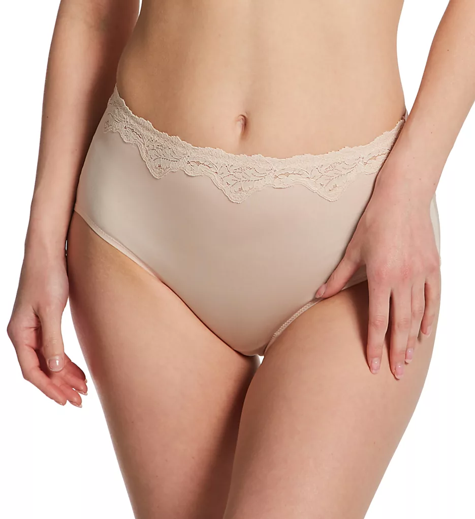High-waist brief-cut panty has a luxuriously soft feel with easy-to-wear comfort. Made of nylon and spandex.