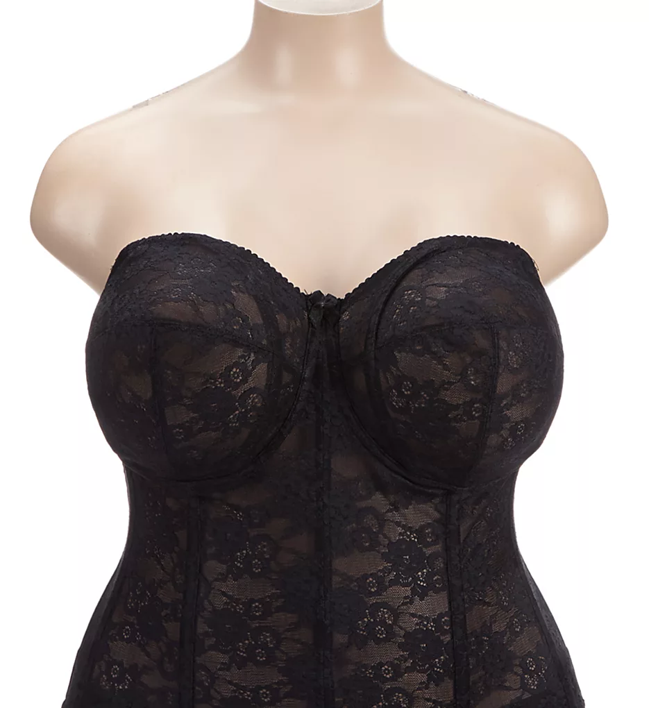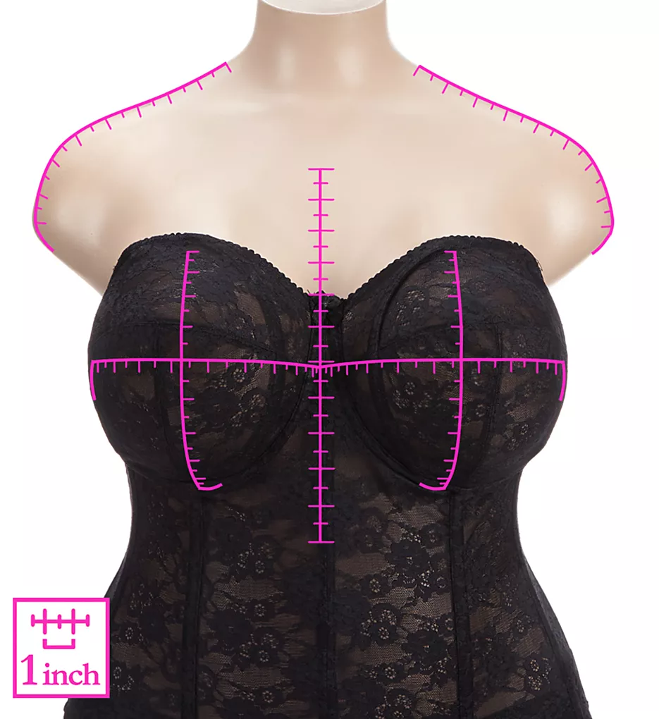 This strapless, full coverage longline underwire bra is ultra supportive and features pretty all-over, non-stretch, smoothing lace for extra control.