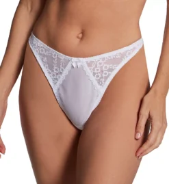 Sleek thong panty features a cute bow and floral lace inset at front. Made of knit nylon, spandex and cotton.