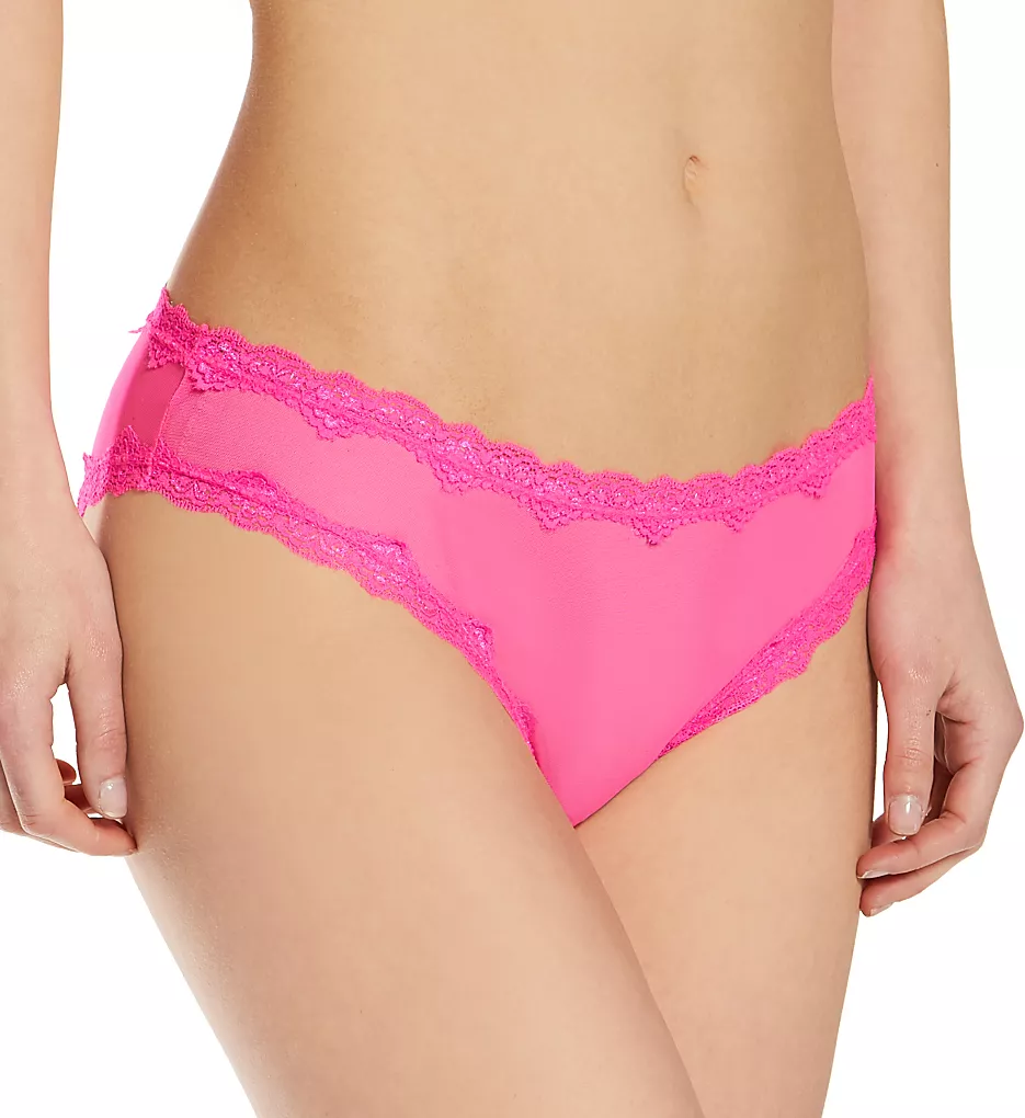 These cute, sheer panties have lace trim for a touch of chicness. Made of nylon/spandex.