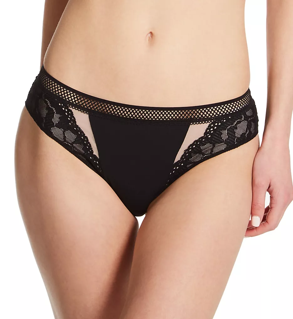 Mid-rise boyshort panty shows off see-through lace sides and back with microfiber center for added comfort. Contrast mesh window at back adds a hint of elegance. Made of polyamide, elastane, cotton.